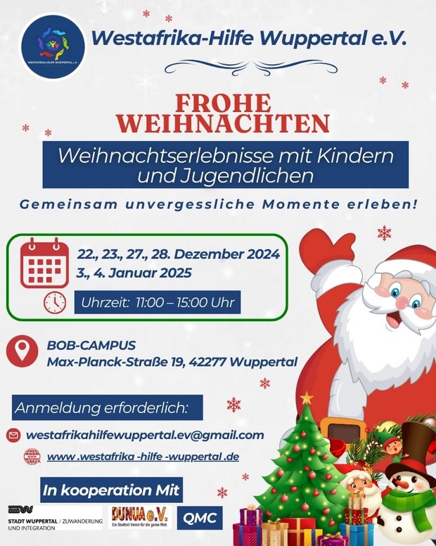 Das Weihnachtsprojekt „Weihnachtliche Gemeinschaftserlebnisse“ fördert ein verbindendes Fest für Familien und Jugendliche durch gemeinschaftliche Erlebnisse, kulturelle Aktivitäten und soziale Unterstützung. Ziele: Kulturelle Erlebnisse: Kreative und interaktive Aktivitäten wie Weihnachtsmärkte und kulturelle Darbietungen.